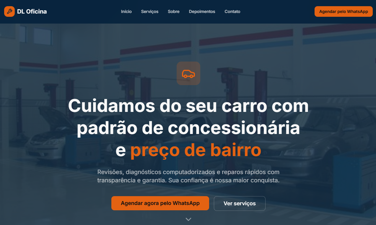 Somos uma empresa focada em criar sites profissionais para pequenos e médios negócios. Nosso objetivo é claro: mais ligações, mais agendamentos, mais clientes para você. Trabalhamos com oficinas, clínicas, estéticas, imobiliárias, restaurantes e muito mais.